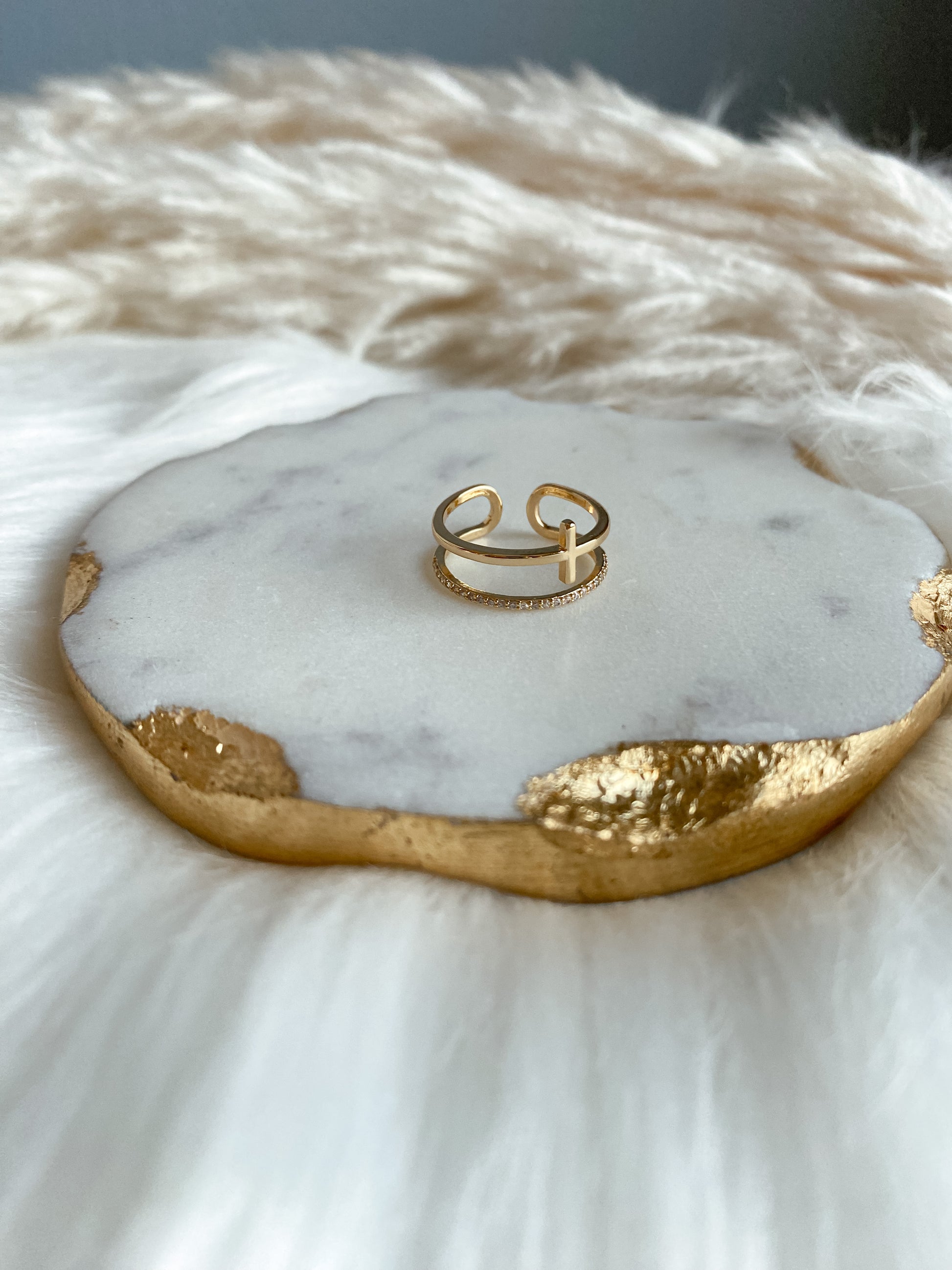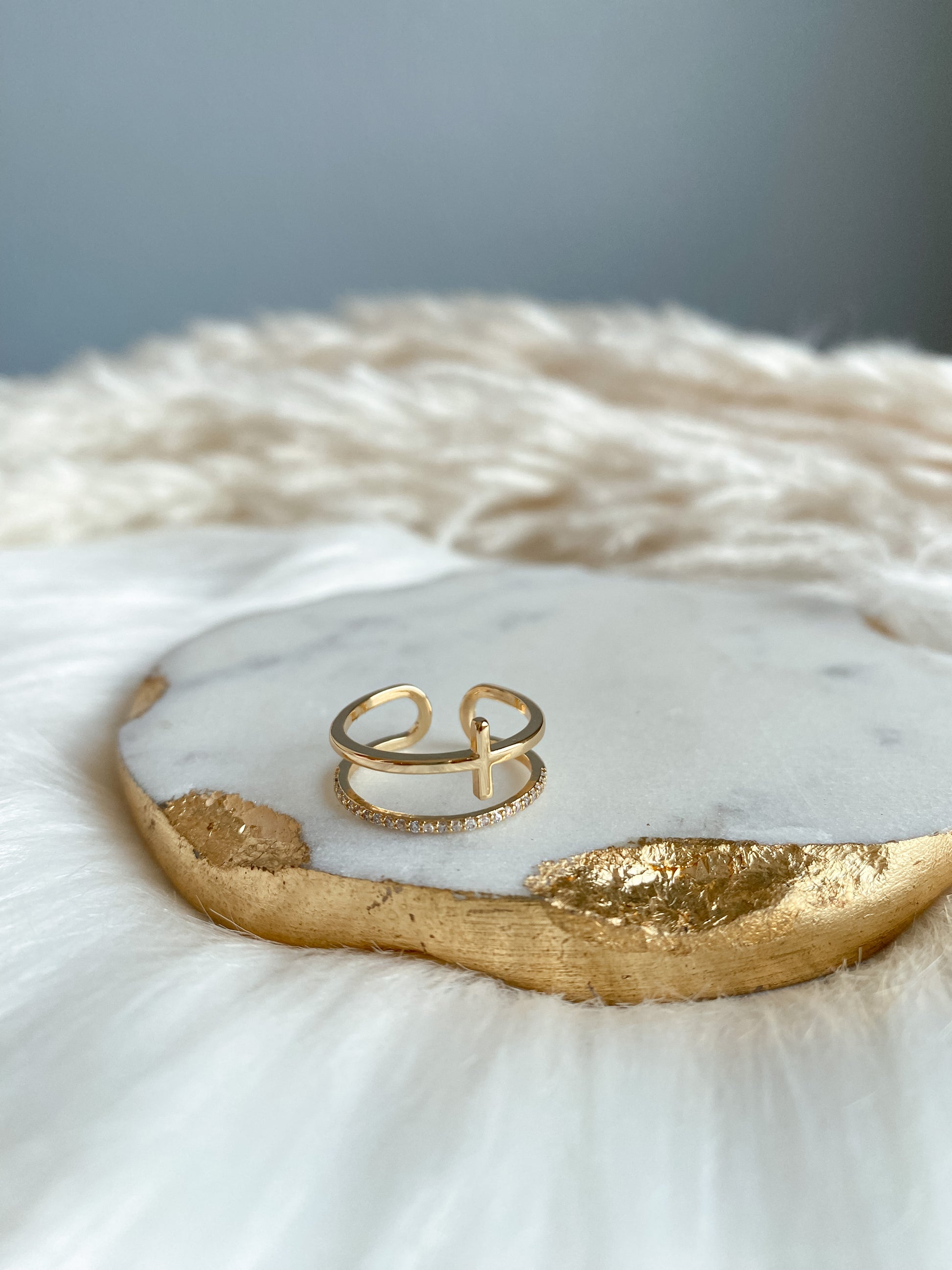This minimalistic ring fits around your finger for the perfect adjustable fit. Gold filled.