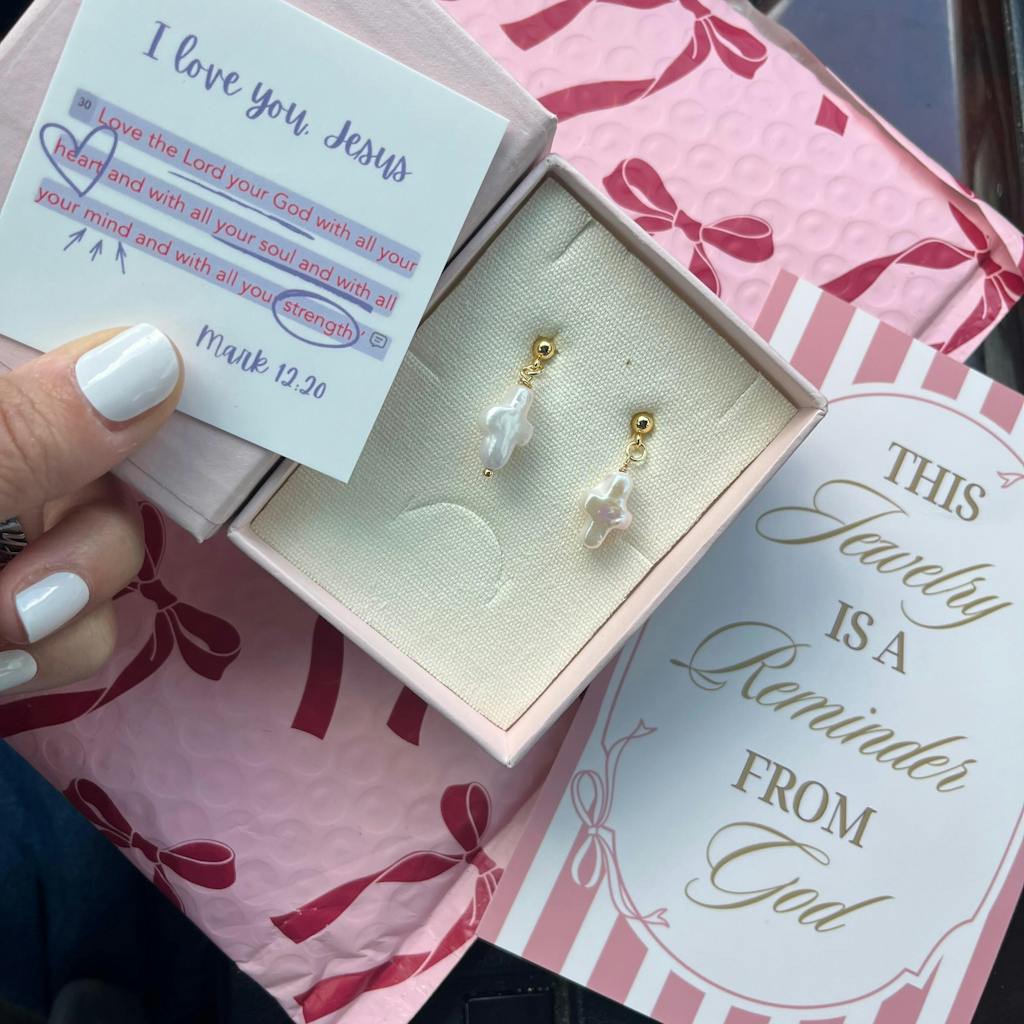 These freshwater pearl cross studs are designed for the woman who wants to carry her faith in a subtle, elegant way every single day.
