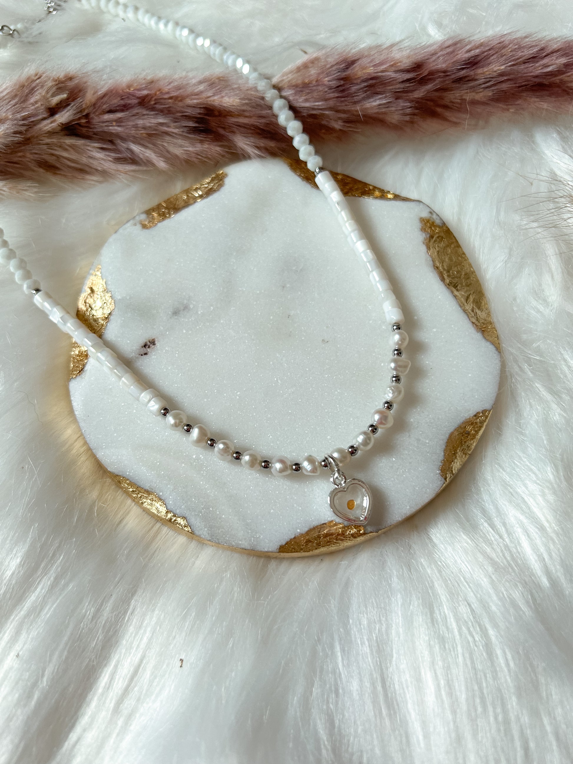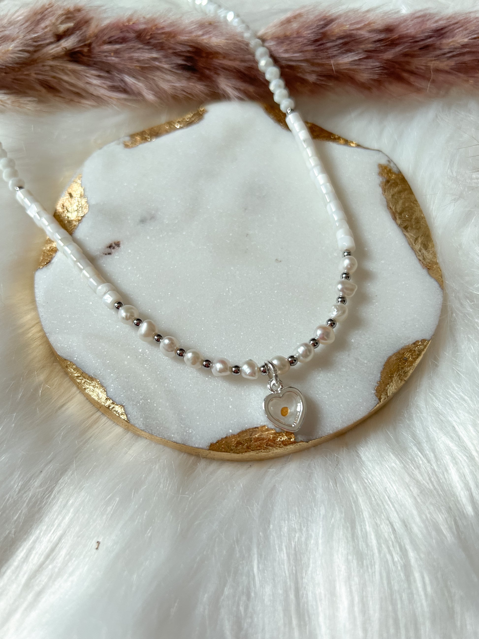 I love this necklace so much. It just arrived yesterday and wearing it to work today I’ve already been complimented on it. I was nervous at first to order it because I usually don’t wear pearls or beaded necklaces and am more fond of dainty jewelry. This necklace was perfect. I asked for added length to make it 18 inches because I don’t like my necklaces that close to my neck and she was excellent and accommodating. I love the meaning of wearing it holds and that it is handmade. The pearls are not too much or “loud” at all like I had feared. The silver and white accents will match my entire closet perfectly. This will be an almost every day staple. I will def be supporting this shop in the future with purchases, especially if they add more silver pieces. Thank you so much!
