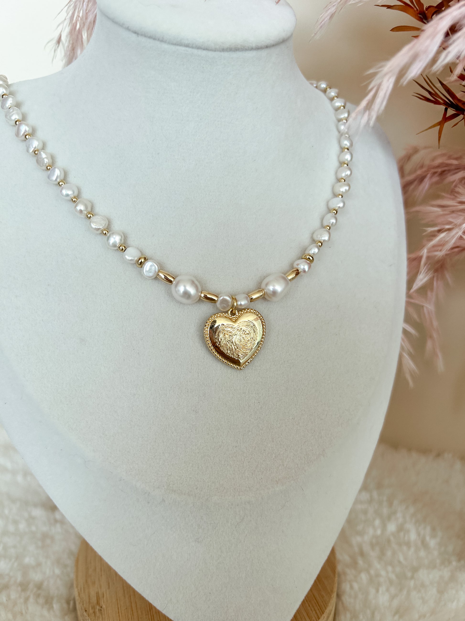 Freshwater pearls with stainless steel gold spacers.