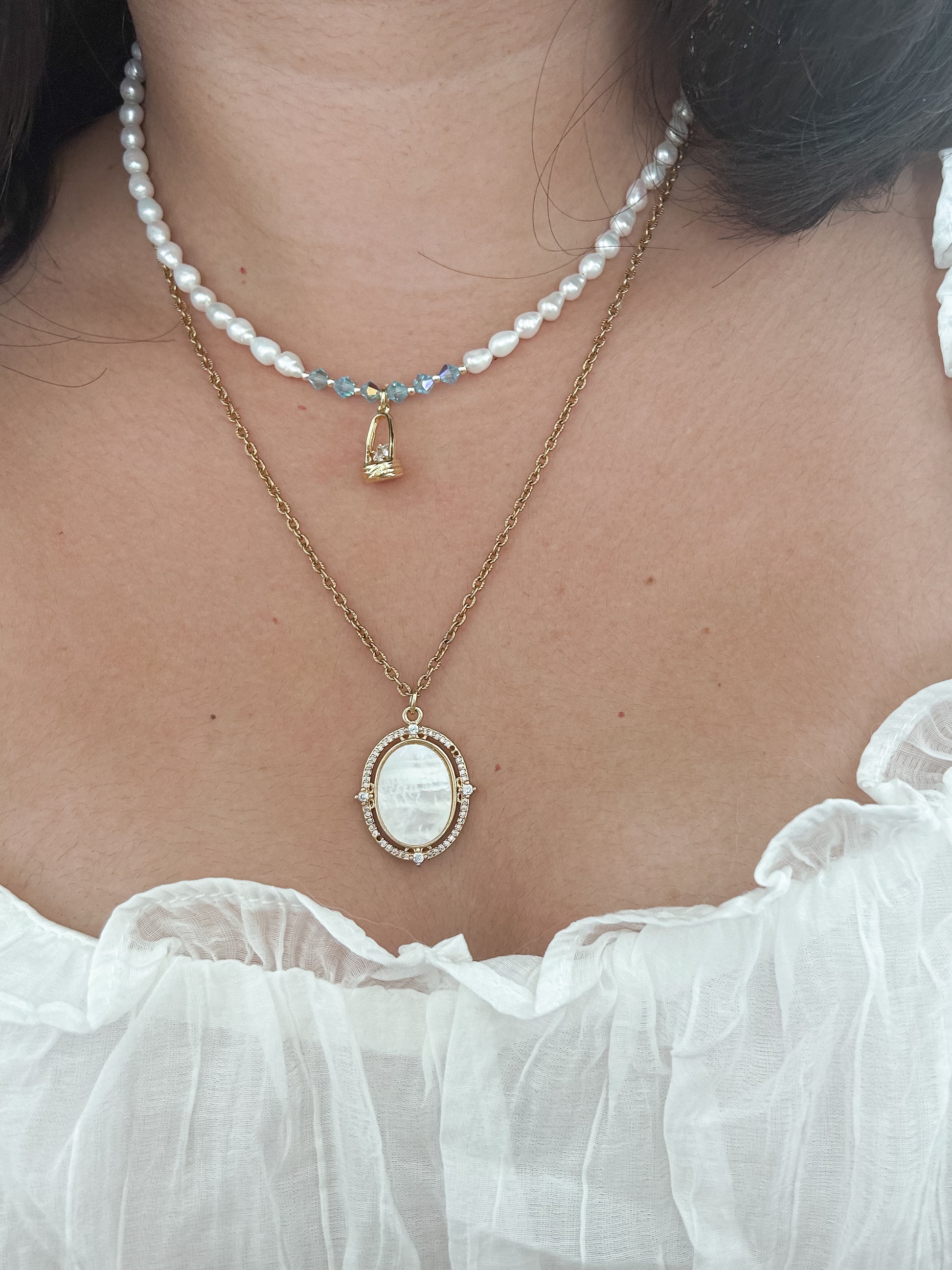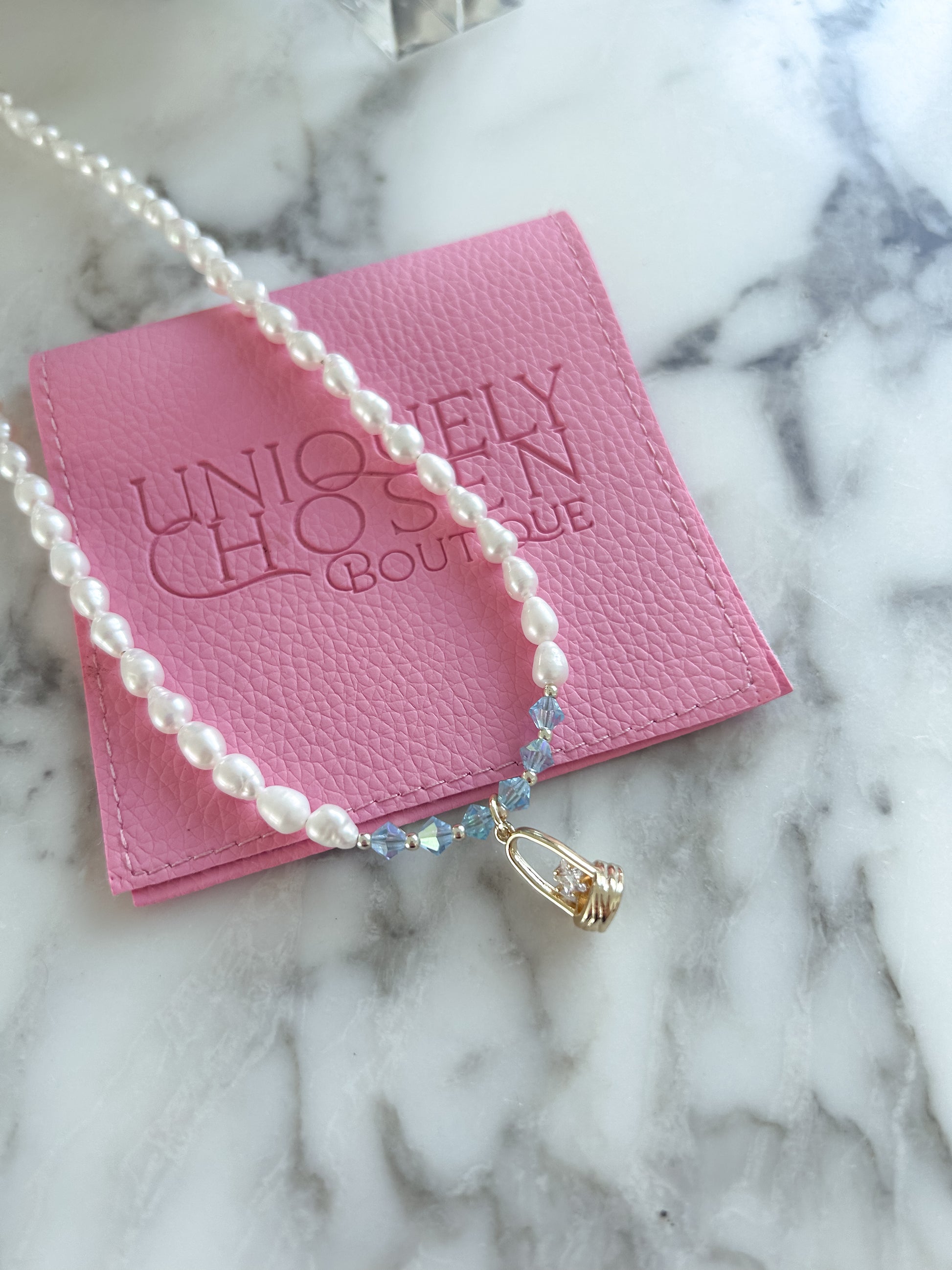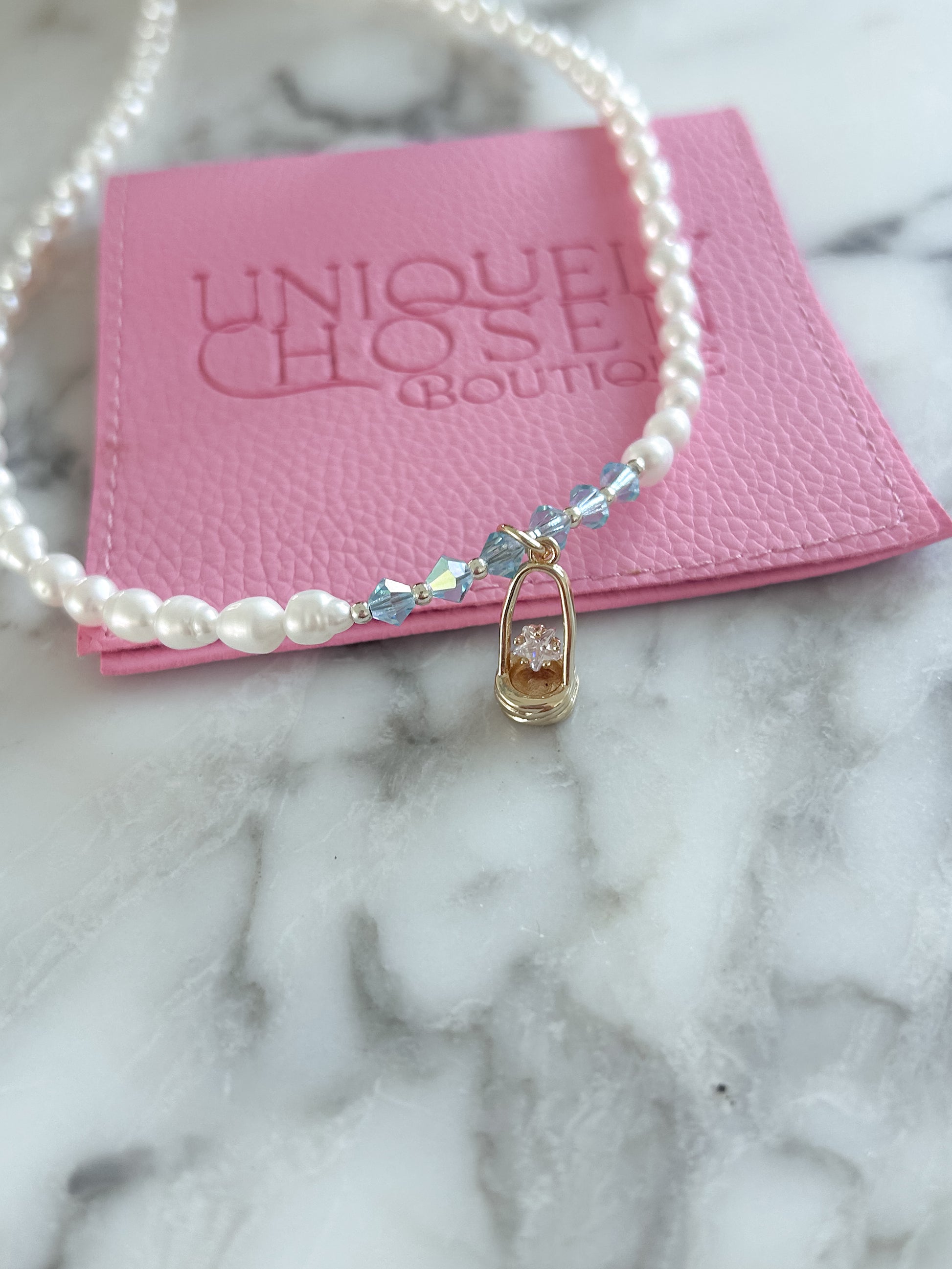 Freshwater pearls, Swarovski, stainless steel endings, 16”.