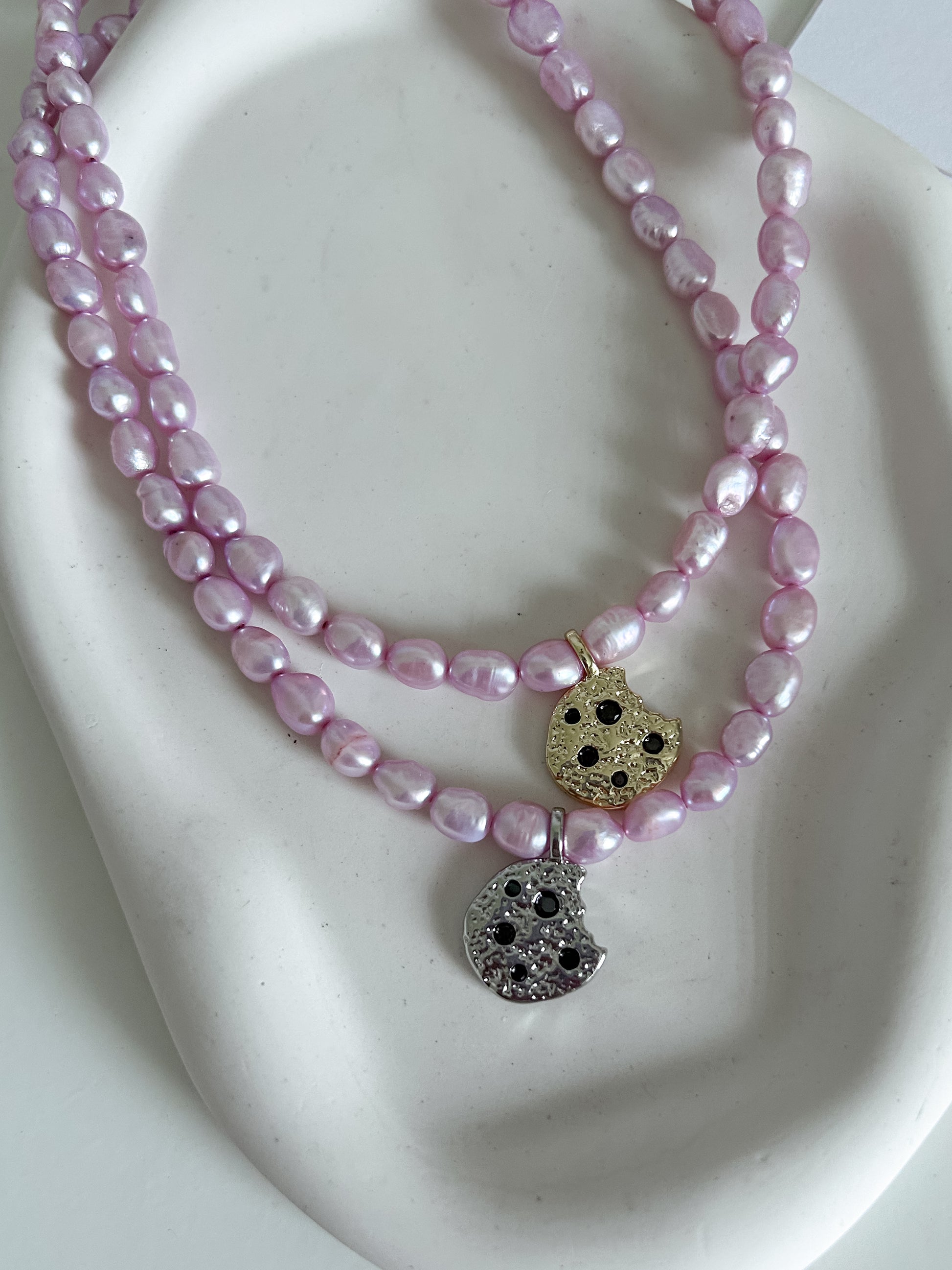 Made with light purple freshwater genuine pearls and a gold-filled charm with zirconia.