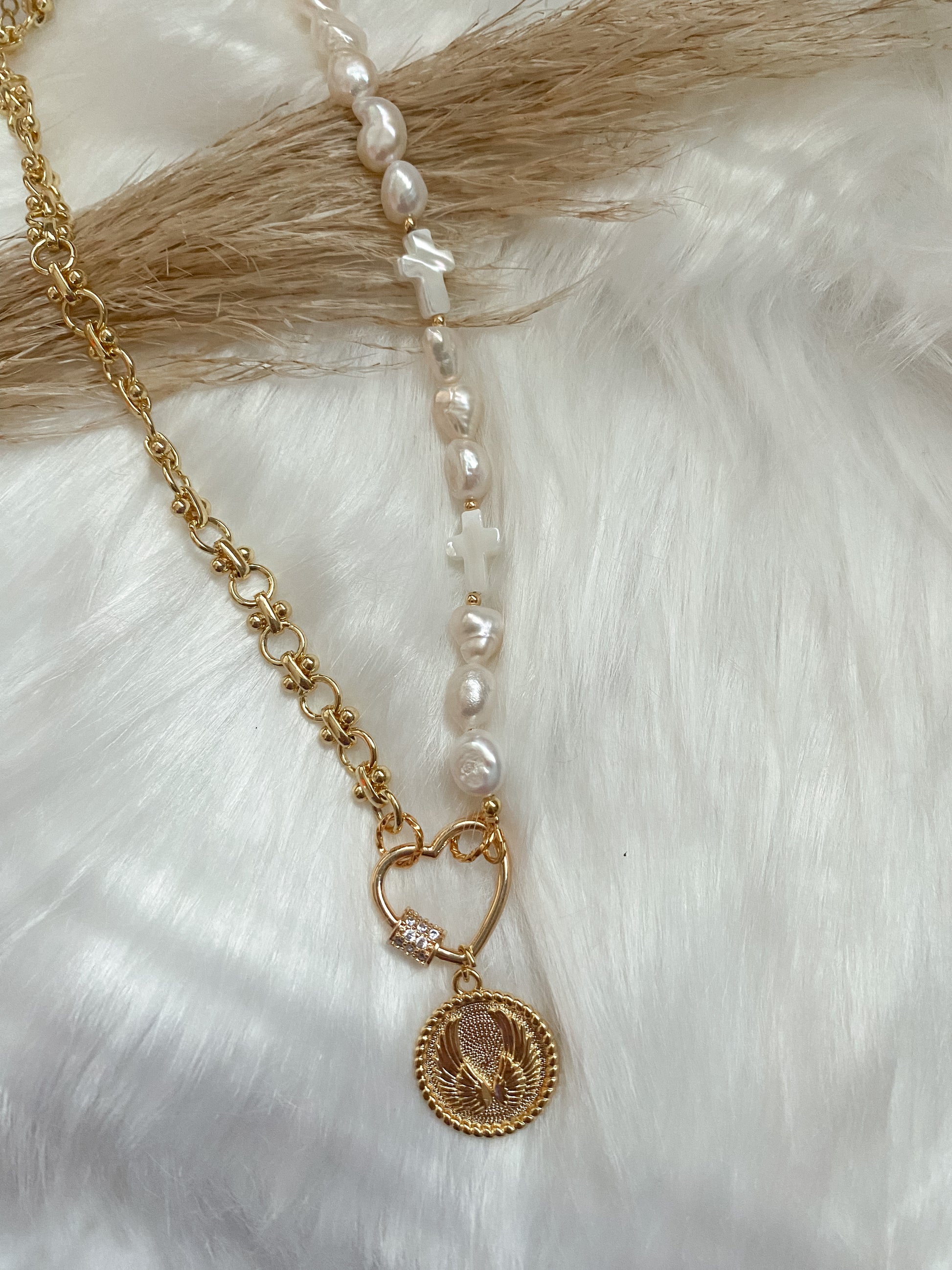 Freshwater pearls, stainless steel with gold plated 18k, 18 inches.